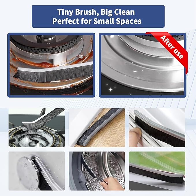 - Deep Cleaning Crevice: Dense and stiff bristles, Only 3mm thick, Easily clean deep into hard-to-reach crevices. A must-have cleaning tool for all housekeeper. Use it in the kitchen, bathroom, garage, pool to SAVE Time and Energy