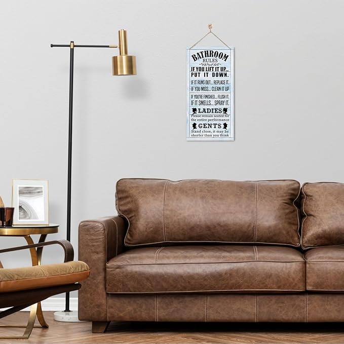 Rustic Western Bathroom Decor - Funny Wall Signs, Farmhouse Country Rules Wall Decor D1