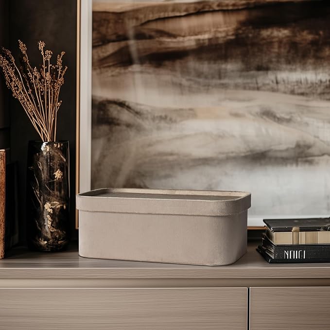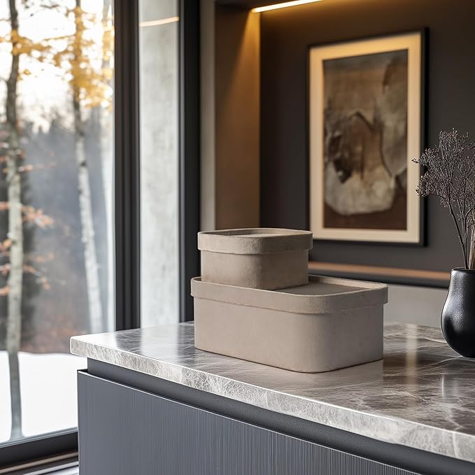 - SOPHISTICATED TAUPE STORAGE BOXES: Elevate your organization game with our stylish taupe storage boxes. Blending form and function seamlessly, these pieces feature a simple yet elegant lid that can be used as a tray for your jewelry, keys, or other small treasures, adding a touch of refined sophistication to your space