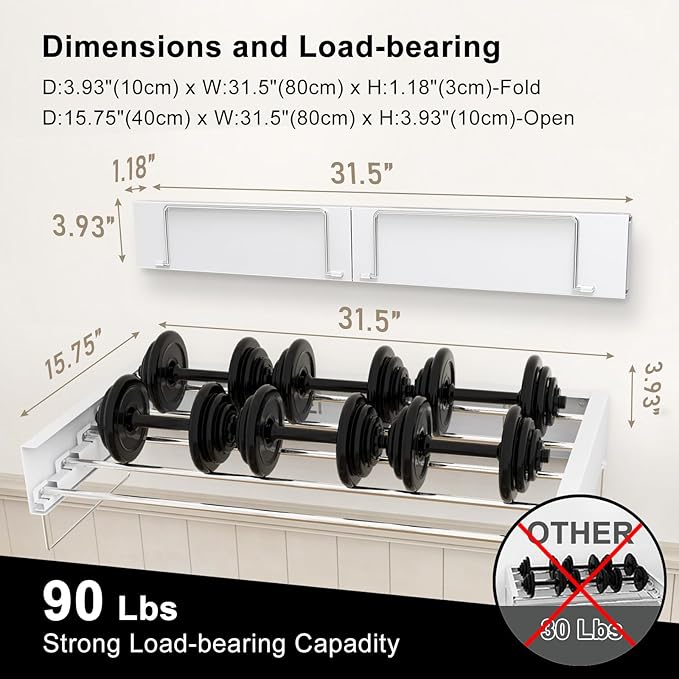 - Sturdier material: The outer arm of this wall mounted clothes drying rack is made of carbon steel material, a solid square structure design, high hardness, strong load-bearing capacity. Clothes drying rack foldable with 5 stainless steel clothes drying rods and 2 towel rods. the load-bearing capacity of each clothes drying rod is 15 pounds, the load-bearing capacity of each towel bar is 7.5 pounds, wall mounted drying rack with a total load-bearing capacity of 90 pound.