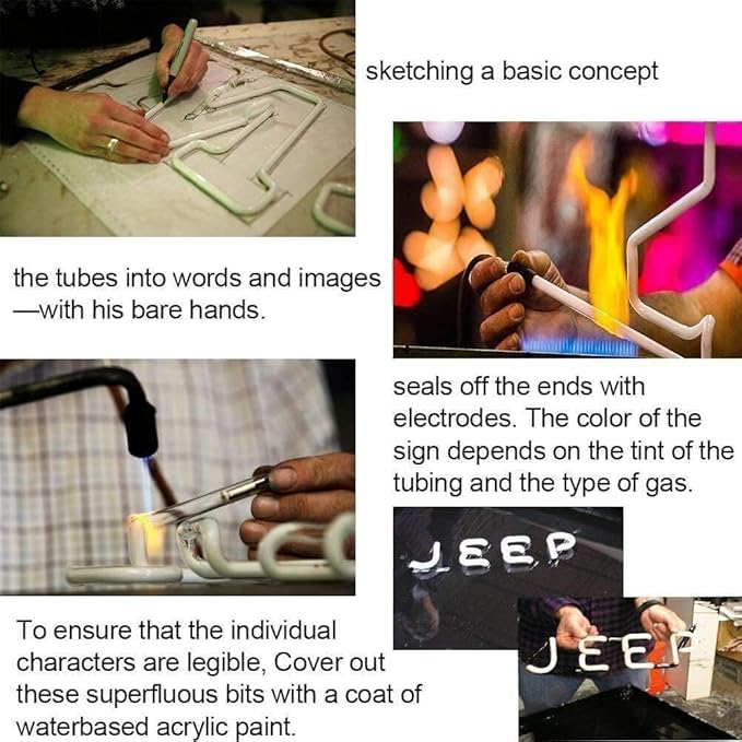 - Glass Neon Signs Feature With Low Temperature,High Efficiency,Low Energy Consumption,Durable,Flexible,Diverse And Dynamic.100% Handcrafted Real Glass Tube, Not Plastic Tube Lights Or Led Signs.