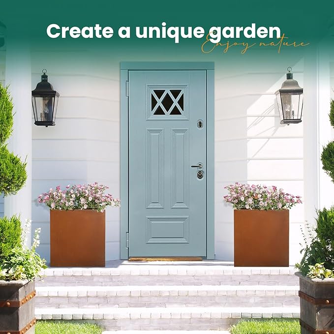 - 【 Corten Steel Planter Box】 Use special weather resistant corten steel, which is characterized by its natural rusting appearance (PS: Be careful to dirty your hands or clothes). This feature can make Steel Planter Box resist any weather. Corten Planters don't need any protection when it is placed outdoors, and long lifetime, it will not be damaged for 50 years.