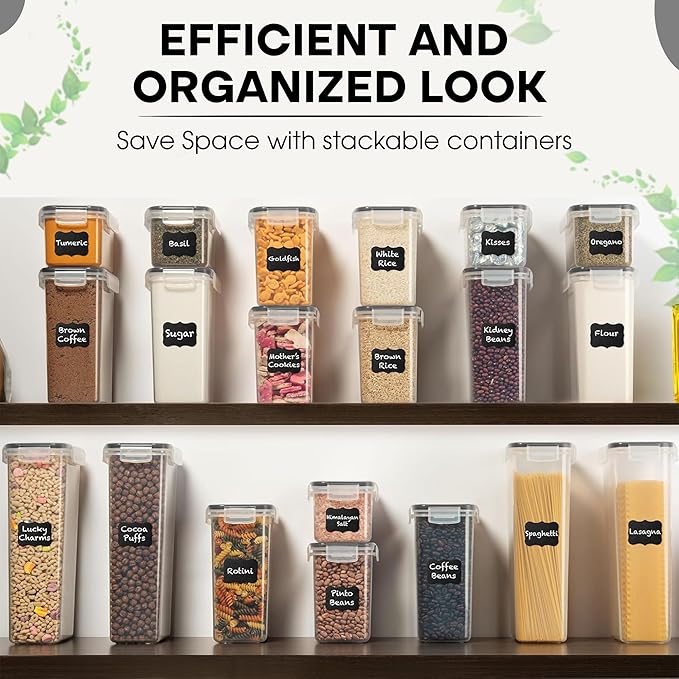 - 𝐑𝐞𝐥𝐢𝐚𝐛𝐥𝐞 𝐀𝐢𝐫𝐭𝐢𝐠𝐡𝐭 𝐂𝐨𝐧𝐭𝐚𝐢𝐧𝐞𝐫𝐬: With 4-sided locking lids, these food storage containers with lids preserve freshness, making them perfect for cereal containers, pantry organizer, and food containers with lids. Protect your food from moisture and keep your kitchen storage neat and efficient.