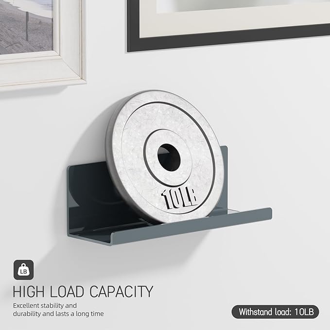 - GREAT FOR DISPLAYS: The adhesive floating shelves measures H3.94x D3.94 x W11.81in and can be firmly fixed to the wall thanks to the 12 square inch of adhesive surface. With a depth of 3.9 in, it is ideal for holding everyday household items such as shower gel, shampoo and fragrance bottles