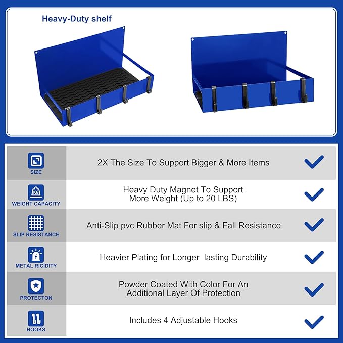 - Easy to Use for Saving Space: our magnetic shelves do not need drilling or installation, you just need to open the package, put the non slip pad on the shelf, and then secure it to the metal surface; The compact and efficient design of this 12 x 6 x 6 inches magnetic tool box serves as a space saving solution, helping keep your working area neat and decluttered