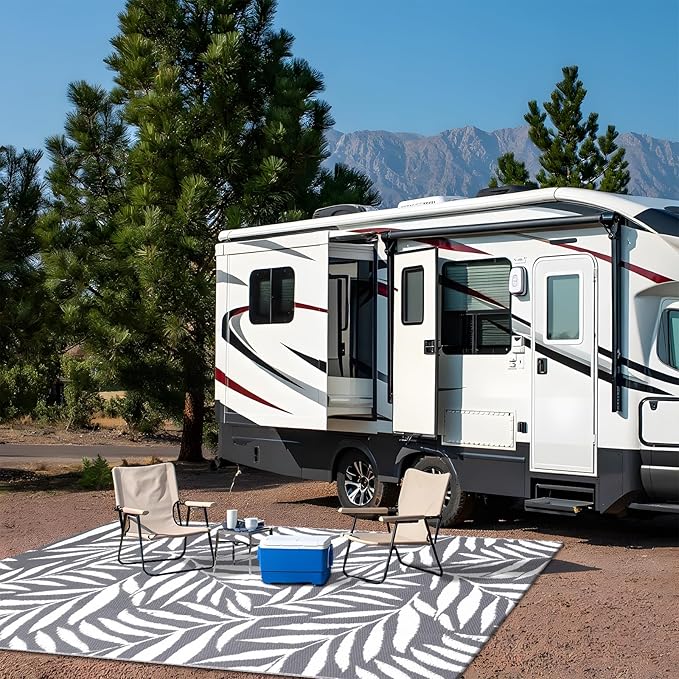 - Stylish & Functional: Our reversible camping rugs feature tropical leaf patterns on both sides, adding a touch of vibrant style to patios, RV's, porches, decks, backyards, and any outdoor space.