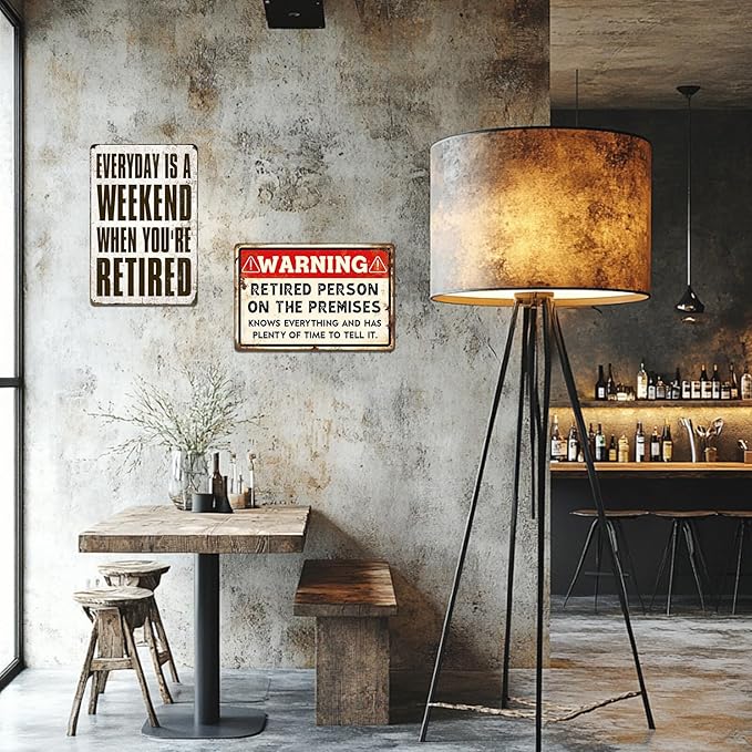 - EASY INSTALLATION - Retirement patio metal signs come with 4 pre-drilled holes for quick mounting on any surface. No adhesives or special tools required. Rolled edges allow safe handling and installation.