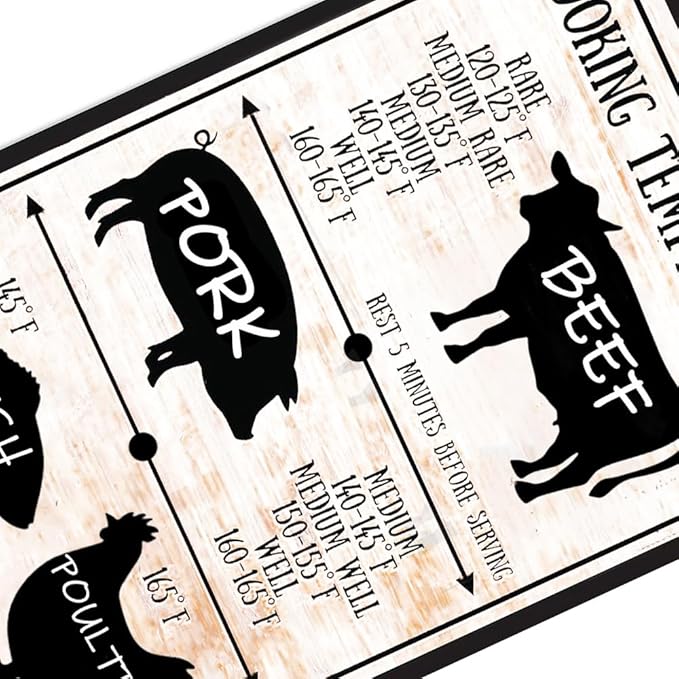 - Meat Internal Cooking Temperatures Sign Gift: Retro Man Cave Decor, Inspirational Gifts, Artistic Decoration, Filled With Your Sincere Love, Ideal For Friends, Boys, Girls, Men, Women, Birthday, Anniversary, Christmas, Mother's Day, Father's Day, Thanksgiving, Great Gift For Halloween, Valentine's Day, Easter.