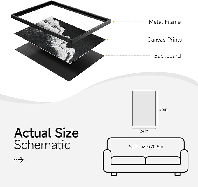 - [Framed Wall Art]: A large framed black and white abstract ocean canvas wall art, size is 24x36 inches, each painting with a sturdy, rust-resistant frame