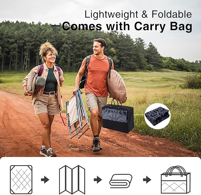- Lightweight & Portable: Ultra-lightweight and foldable, this outdoor rug is a breeze to carry and store. Take it to picnics, beach outings, or camping trips with ease. Perfect for casual outdoor gatherings, it combines practicality with effortless portability.