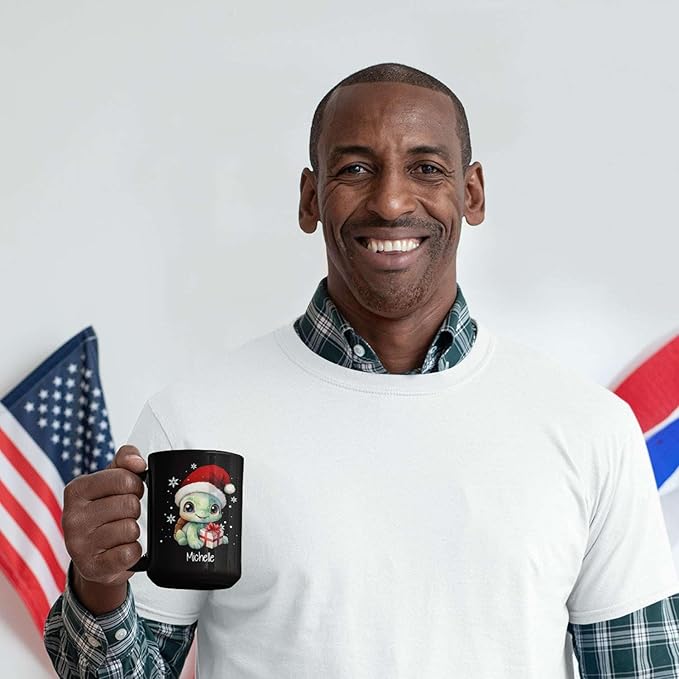 - 💝 UNIQUE DESIGN MUG: Brighten the holidays with this "Coffee Mug With Xmas Turtle Design" featuring an adorable turtle in a Santa hat holding a gift. Click "Customize Now" to add a name and create a heartwarming holiday gift for turtle lovers. This black ceramic mug is great for cozying up with your favorite festive beverages.