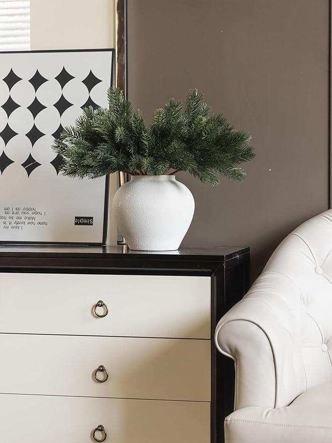- 【Premium Quality and Natural Appearance】Crafted from high-quality PE, these branches mimic the natural green color of real cedar, offering both aesthetic beauty and durability. After opening the package, simply let the product air out for a few hours to eliminate any initial odor, ensuring a better experience. Note: Vase not included.