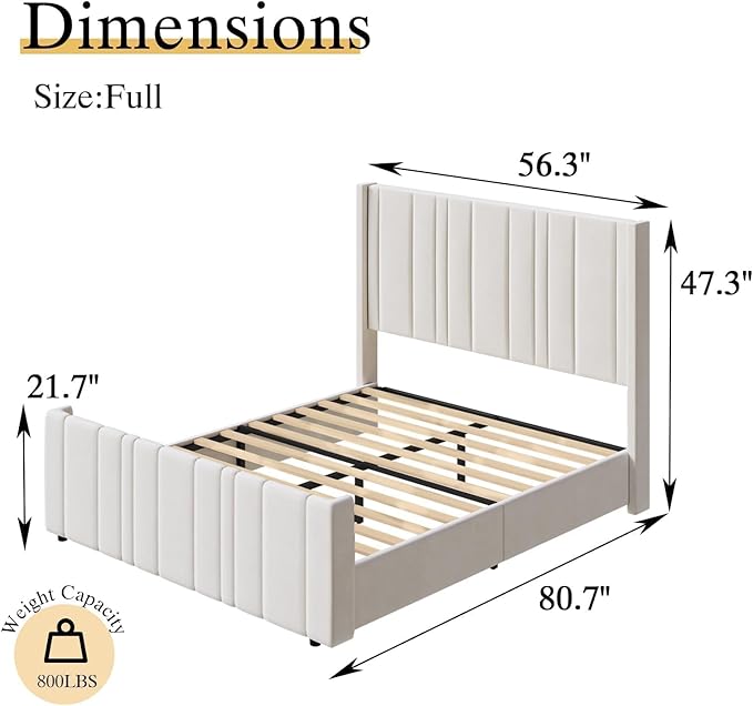 - Easy Assembly & Support: Assemble in 2 hours using provided hardware and clear labeled parts; For this full velvet upholstered bed frame, 2 adults assemble recommended. Enjoy responsive customer support addressing concerns within 24 hours