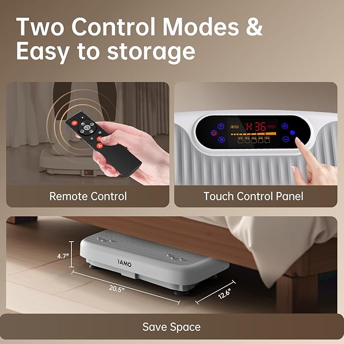 - Rich Features & Easy Operation: Our vibration plate exercise machine is designed with both automatic and manual modes to meet the needs of different users. The automatic mode comes with five preset programs, while the manual mode offers an 99 levels of speed adjustments. For added convenience, the vibration plate is equipped with a user-friendly remote control that simplifies operation