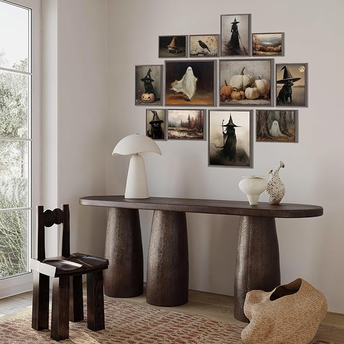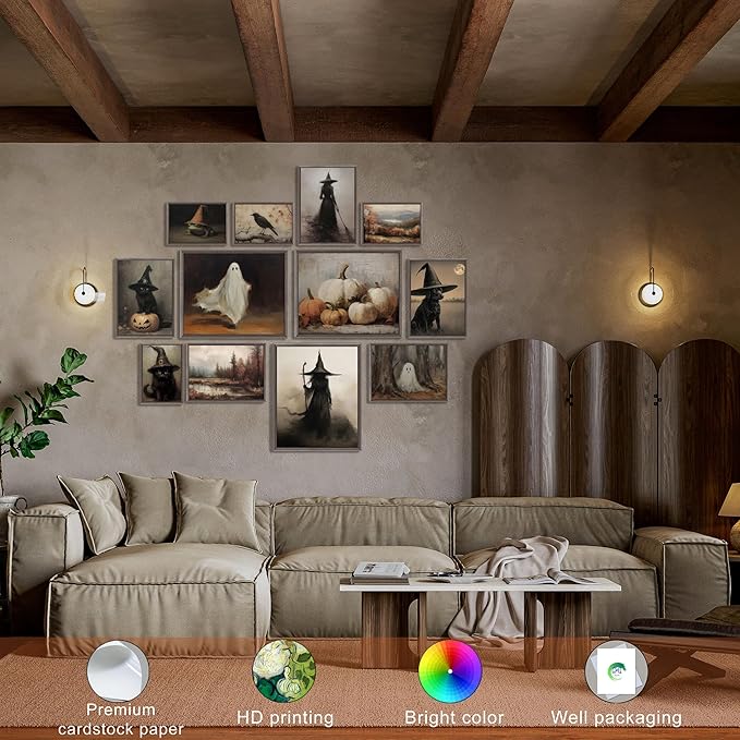 LANCHI95 12 Pcs Halloween Wall Art Prints, Vintage Witch Posters, Cute Ghost Pictures for Bedroom Decor (UNFRAMED)
