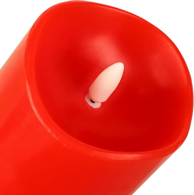 - Product Information: This set includes 3 red real wax flameless candles in different sizes: 3"x4" (0.34 lb), 3"x5" (0.44 lb), and 3"x6" (0.49 lb). Each flameless pillar candle requires three 1.5V AAA batteries (not included) for operation