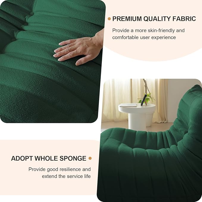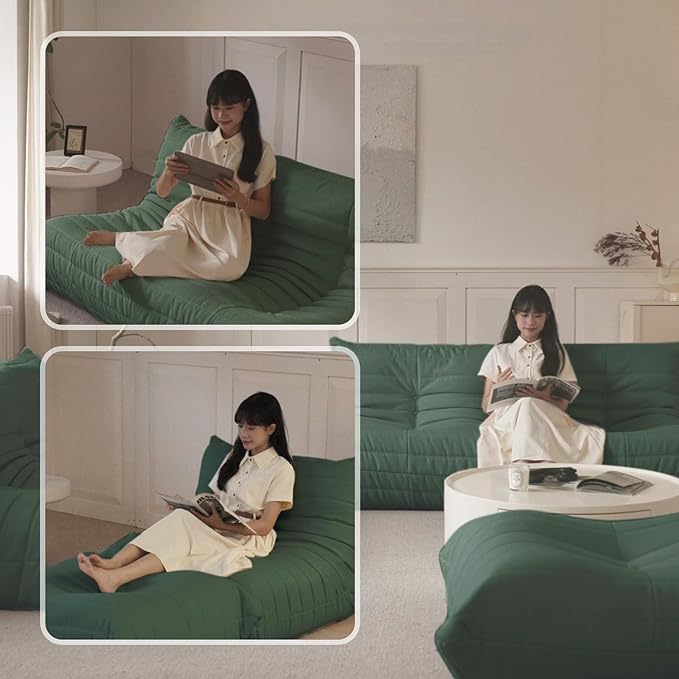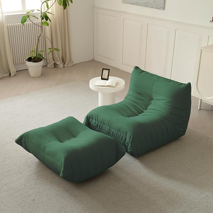 Luxury Ottomans, Modern Square Foot Rest for Sofa Couch Chair, Lazy Floor Seating, Fireside Bean Bag Chair, Tatami Sofa Lounger for Living Room, Bedroom, Office, Green