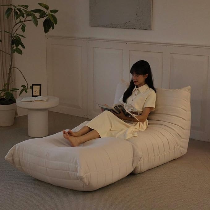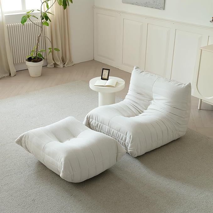 Luxury Ottomans, Modern Square Foot Rest for Sofa Couch Chair, Lazy Floor Seating, Fireside Bean Bag Chair, Tatami Sofa Lounger for Living Room, Bedroom, Office, White