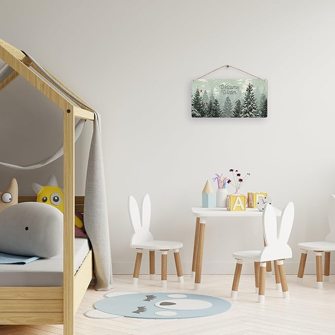 Welcome Winter Hanging Wooden Signs 12x6, Pine Tree Decor, Winter Door Decorations, Winter Door Sign, Snowflake Pine Trees Birds Home Room Office Hanging Wall Decor