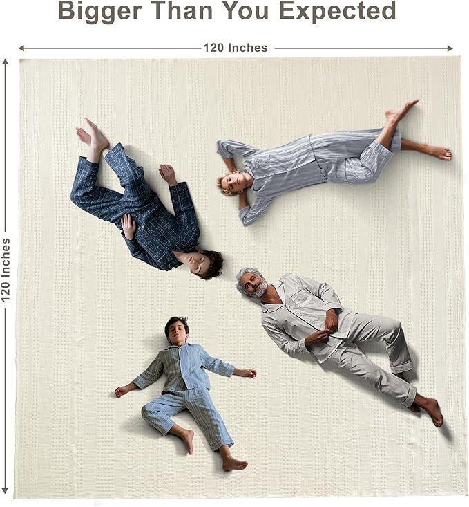 PHF 100% Cotton Waffle Blanket Oversized King 120"x120", Lightweight Breathable Extra Large 10'x10' Summer Blankets for Bed, Giant Big Luxury Aesthetic Woven Bedding for Home Decor, Ivory