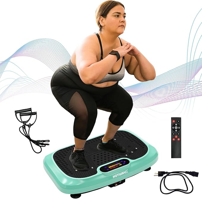 - ➤【HOTWAVE Shaking Plate Exercise Machine】Lightweight 15-pound vibration playe is perfect for home workouts, offering easy mobility and minimal space usage, vibration board with no assembly required. Vibrating board includes a remote control, one 110V power cord, two resistance bands, and a product brochure. Vibrating plate exercise machine versatile for sitting, lying down, standing, or squatting. With any questions, please contact us for efficient after-sales service and support.