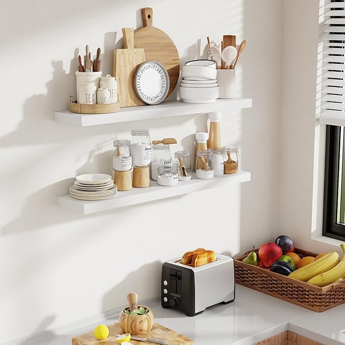 - [EASY INSTALLATION WITH FULL INSTRUCTIONS]: Our floating shelves come with all mounting hardware and an easy-to-follow guide, allowing for quick setup in less than 10 minutes. With step-by-step instructions, you can enjoy these beautiful shelves with minimal effort, adding an instant upgrade to your space.