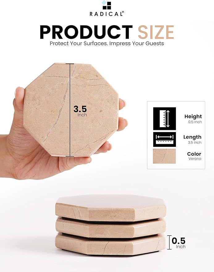 Radicaln Marble Coasters Star 3.5" Inches Verona Handmade Drink Coasters Set of 6 for Coffee Table, Car Cup Holders & Bar Use, Ideal Coffee Table Decor