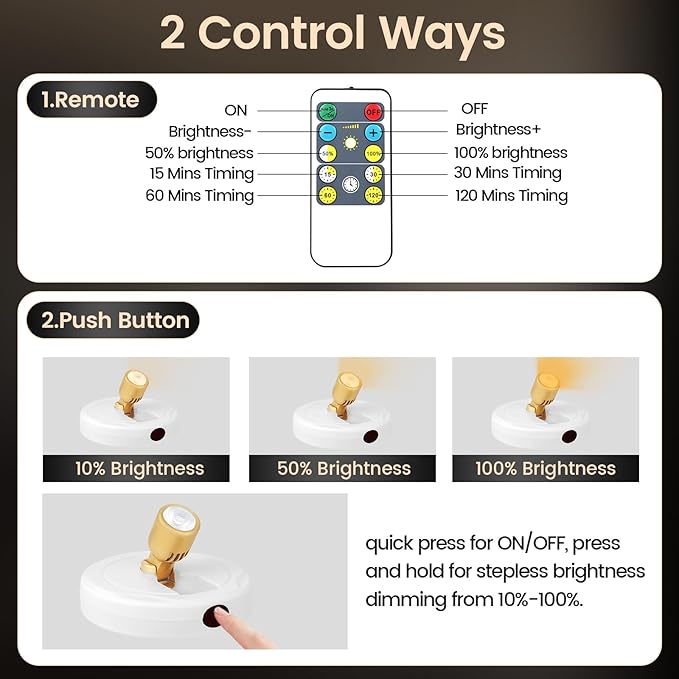 - [Adjustable Brightness] - Press the "+" or "-" button on the remote to adjust the brightness level of the spot light from 10% - 100% as you wish.