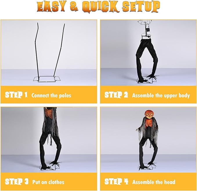 - Animated Scary Motion - 7 ft Animatronics Pumpkin features an IR motion sensor & foot pedal control, activated to abruptly rotate its head and body from side to side and utter bone-chilling curses to terrify trick-or-treaters, ready to turn your home into the scariest haunted house on the block