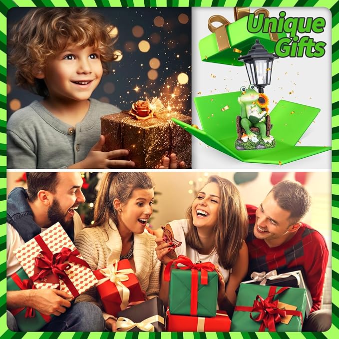 mopha Solar Garden Statues Frog Decor wth Lanterns - 12.5'' Figurines Decorations for Patio Yard Lawn Ornaments Gifts for Christmas Birthday Easter Housewarming