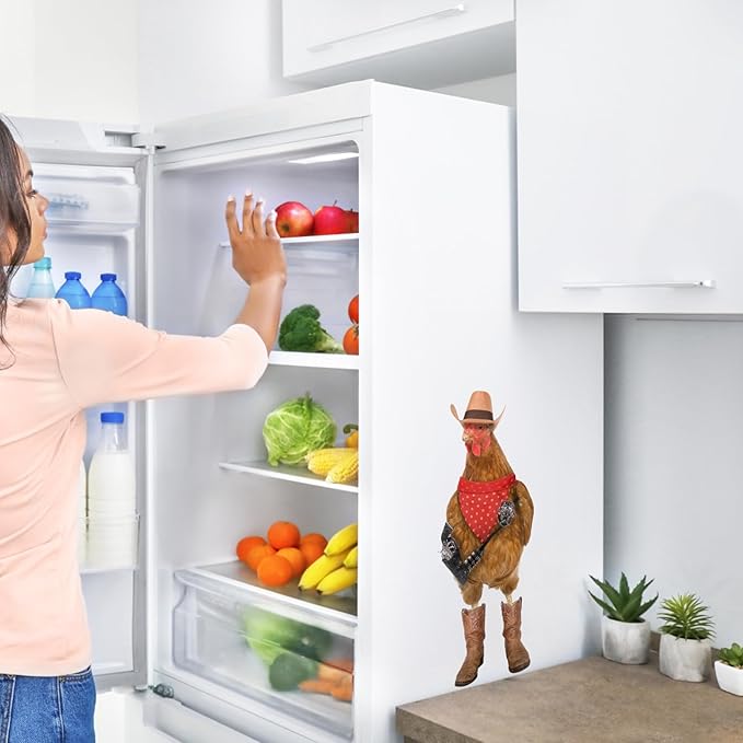 Cool Cowboy Chicken Wall Stickers Peel and Stick, Chicken Lover Gifts Window Stickers Removable, Funny Farm Chicken Wall Decals Decor, Weird Gifts for Friends
