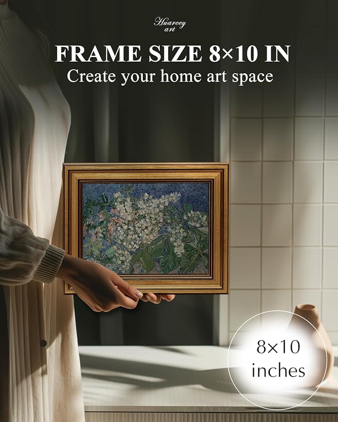 HUARCEY Gold Framed Vintage Wall Art for Living Room, Flowers Painting Canvas Prints Shelf Decor for Kitchen, Van Gogh Bedroom Wall Art, Christmas Gifts for Friends or Family ( Chestnut Branches 8"x10" )