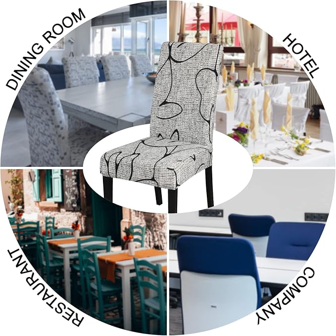 - 【High Quality of Chair Cover】- JQinHome dining room chair coversare made of durable and high persistence polyester and stretchy spandex fabric, soft, comfortable and wrinkle resistant, no ironing required; Stretchable Material,stretch that recovers quickly,secure fit with sewn-in elastic hem.