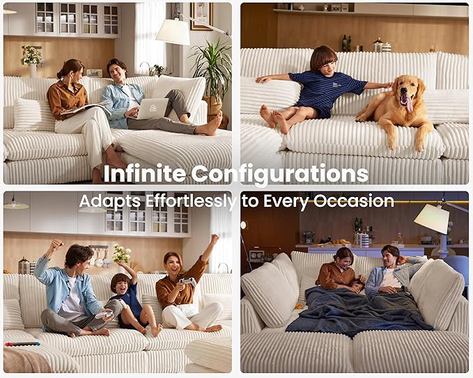 - 【Endlessly Modular for Tailored Space】Transform your space with ease using the fully modular design. Whether you need a cozy L-shape for movie nights, a U-shape or a spacious sleeper for entertaining, each piece reconfigures to fit your needs. This sectional adapts to any room, offering customizable comfort. Perfect for living rooms, home offices, or entertainment spaces, it provides flexibility without complicated tools. Enjoy seamless reconfiguration for relaxing, working, or entertaining
