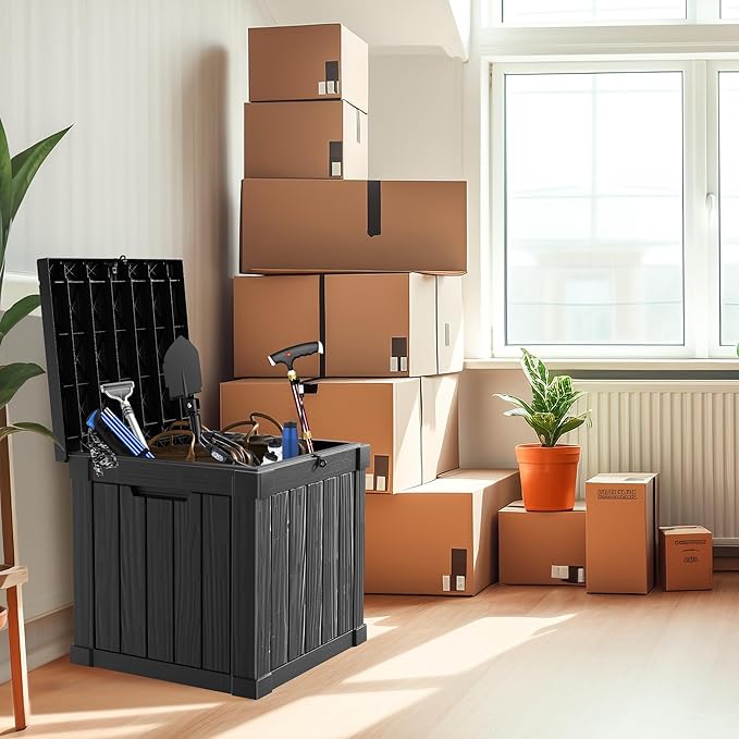 - Weatherproof material: This deck box is made of environmentally friendly polymer resin. It has better water and UV resistance than traditional wood. There is no need to worry about it fading and falling off in the coming years. Years of virtually no maintenance are required.
