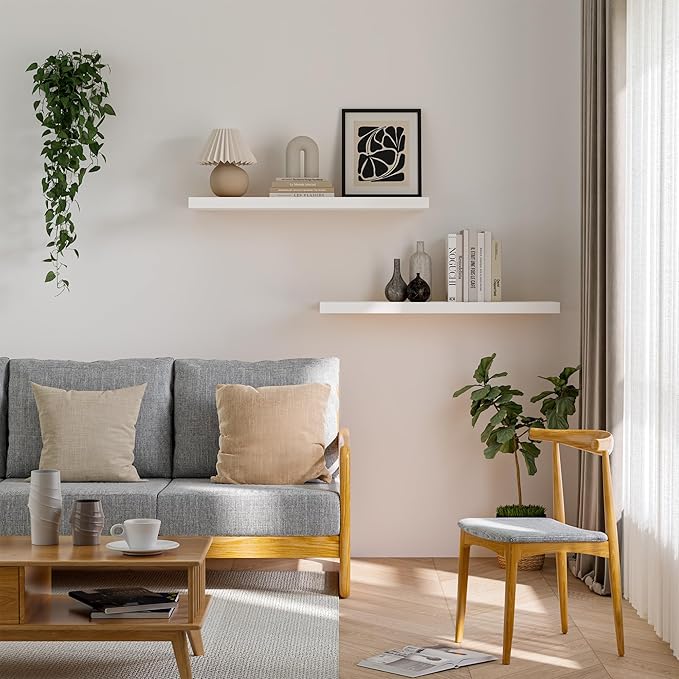 Floating Wood Shelves for Wall 36 Inches x 8”x 1.4” Shelf Floating Home Decor, Heavy Duty Shelf Hold 80 lbs, Wall Shelves for Bathroom Living Room Kitchen Bedroom Office - Set of 2 White