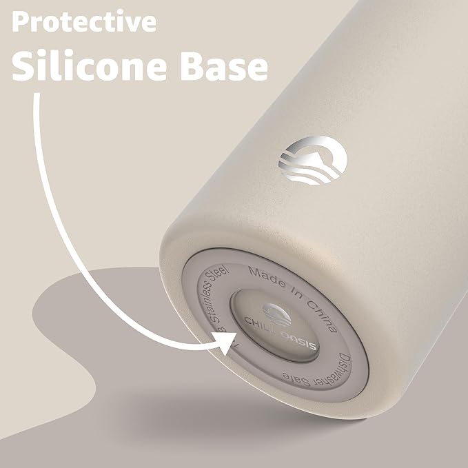 Chill Oasis Water Bottle | Compatible With Popular Flavor Cartridges | BPA Free, Leak Proof, Double-Walled Vacuum Insulated Stainless Steel, and Dishwasher Safe | Cold for 24 Hours (Beige, 12oz)