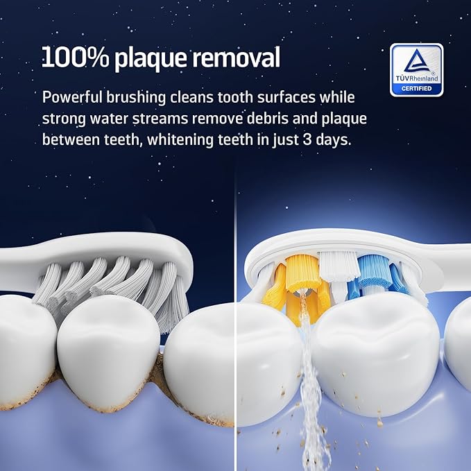- EFFORTLESS 2-IN-1 ORAL CARE: Experience the convenience of a single device that integrates both brushing and flossing functions, simplifying your oral care routine.