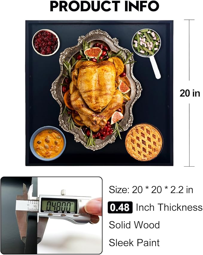 - 20 INCH OTTOMAN TRAY - This extra large serving tray is perfect for a variety of uses. Measuring 20" x 20" x 2.2", it’s ideal for serving drinks on the coffee table, organizing items on your couch, or using it in the kitchen. This decorative tray adds both function and style to your home.