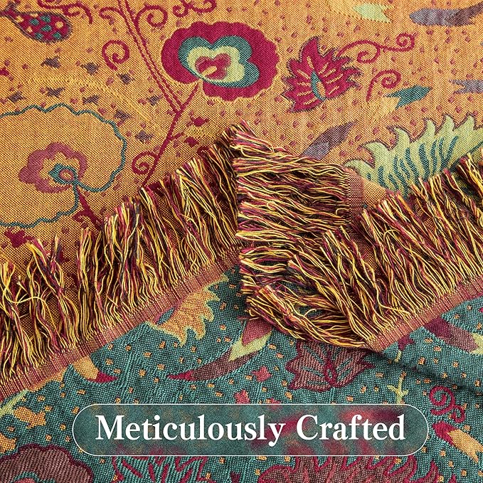 - Endless Uses: This large, multi-use blanket is perfect for any setting. Use it as a cozy bedspread, bed runner, or coverlet on your queen, full, or twin bed, or as a stylish tapestry on your sofa, chair, or in your bedroom. Take it outdoors for picnics, camping, or beach days — it’s big enough to cover you on the grass or sand. Whether at home or on the go, this blanket adds comfort and charm wherever you need it, offering both beauty and practicality in every setting.