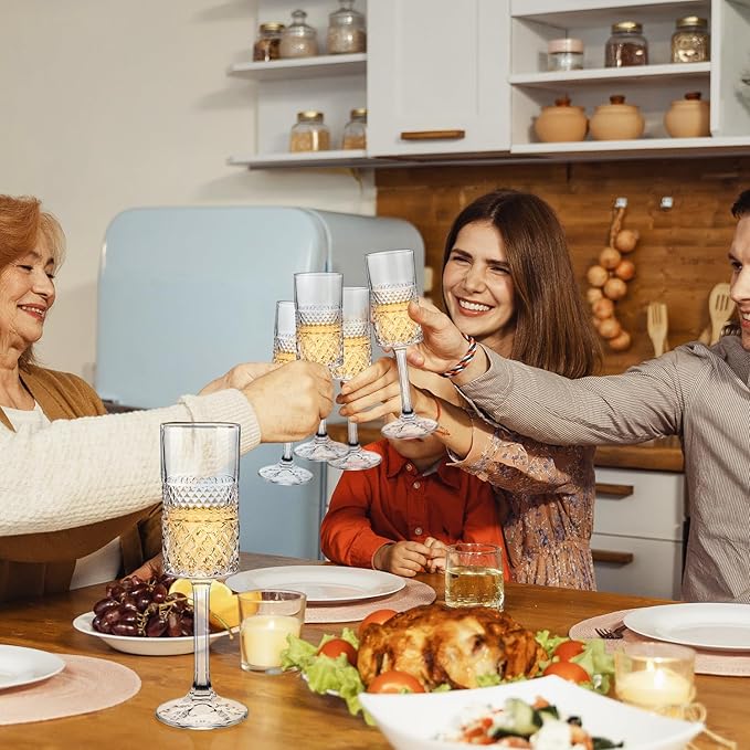 - Large Capacity: Each crystal champagne glasses can hold up to 7oz, perfect for sipping champagne, mimosa, spumante and other sparkling wines. Dishwasher safe and easy to clean.