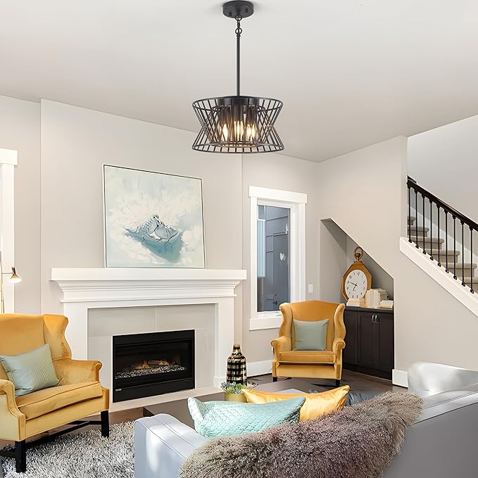 - Vintage Geometric Design: This black kitchen island iron chandelier is made of high quality metal, the geometric frame builds a stylish shape, not only is it sturdy and durable, but also the one-of-a-kind design brings a unique and chic lighting effect to your room