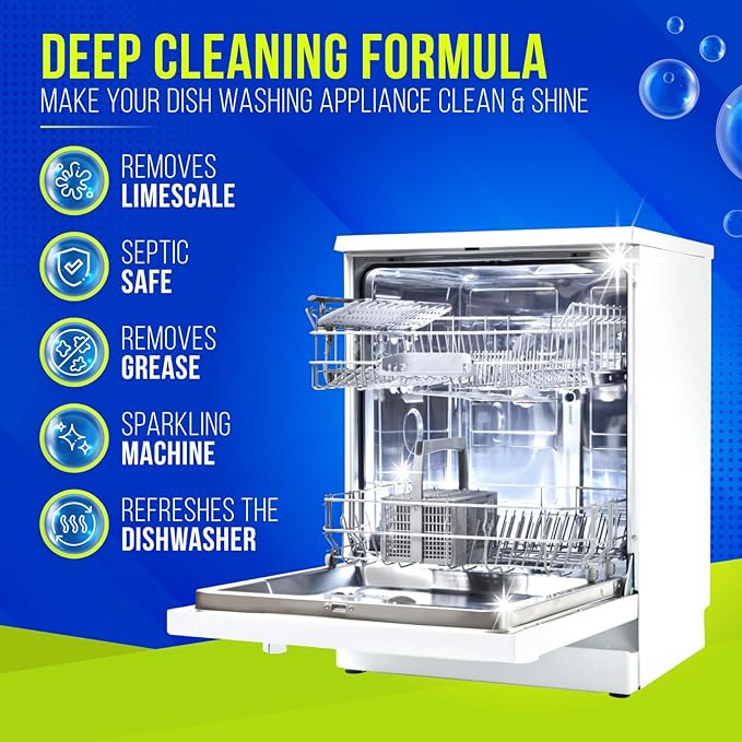 - Powerful Cleaning for Washing Machines & Dishwashers: This bundle combines septic-safe washing machine cleaner tablets and advanced dishwasher cleaner tablets, providing a comprehensive deep cleaning solution that eliminates residues, stains, grime, and limescale from both appliances.