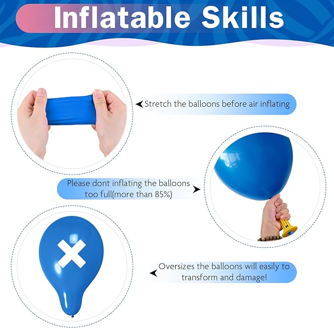 - Easy to Use : These kids' party balloons for birthday party can be easily inflated with air or helium; Blow them up with a mouth, pump or helium; If you want them to float, make sure to fill them with helium; We provide balloon ribbons to help you creat various summer balloon arch kit