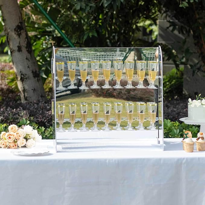 Tableclothsfactory Silver Mirror Finish 2-Tier Wine Glass Stemware Rack, 18 Champagne Flute Holder Foam Board Stand - 25"
