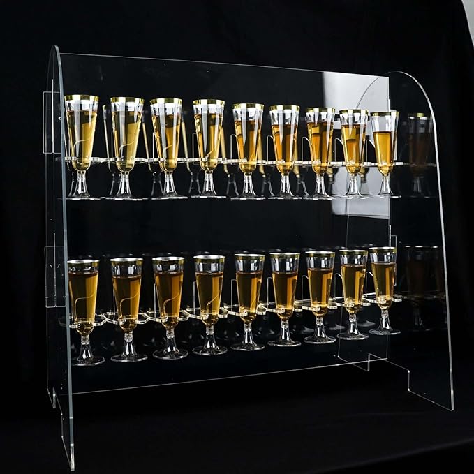 Tableclothsfactory 25" Clear Acrylic 2-Tier Wine Glass Stemware Rack, Champagne Flute Holder with Stand