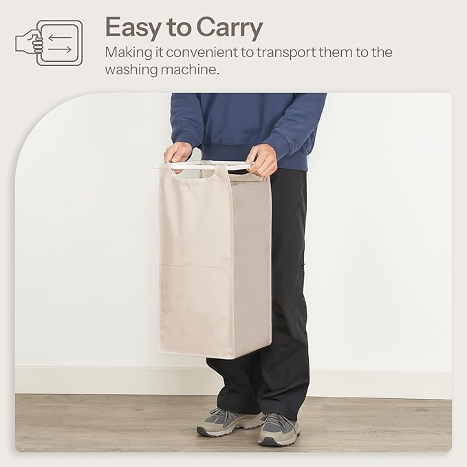 - Efficient Divided Storage: With 3 spacious compartments, each holding up to 11.5 gallons (43.4L), this laundry sorter boasts a total capacity of 34.5 gallons (130L), so you can easily organize your laundry by type and separate the lights and darks