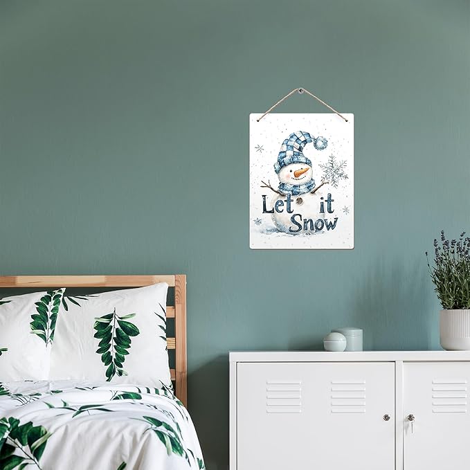 Winter Snowman Hanging Wooden Signs 12x6, Let It Snow Signs, Winter Wall Decor, Winter Door Decor, Blue Snowman Winter Snowflakes Home Room Office Hanging Wall Decor