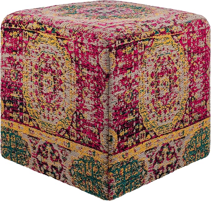 Mark&Day Pouf Ottoman, Kaltenleutgeben Traditional Bright Pink Cube Pouf Foot Rest for Living Room, Bedroom and Boho Home Decor (18"x18"x18")