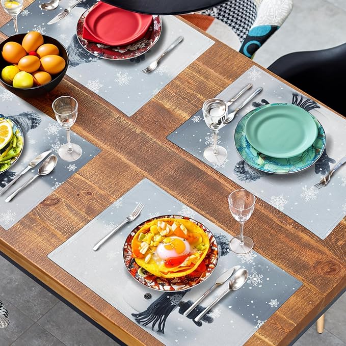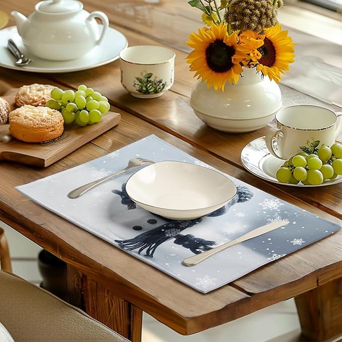 - VERSATILE OCCASIONS: Winter snowman table place mats are suitable for different occasions and are an excellent decorative mat for any indoor or outdoor setting, such as kitchens, dining tables, hotels, restaurants, coffee shops, and business offices. They are also a beautiful decoration for banquets, dinners, receptions, housewarming, family gatherings, parties, and leisure kitchens. This will definitely leave a deep impression on the guests